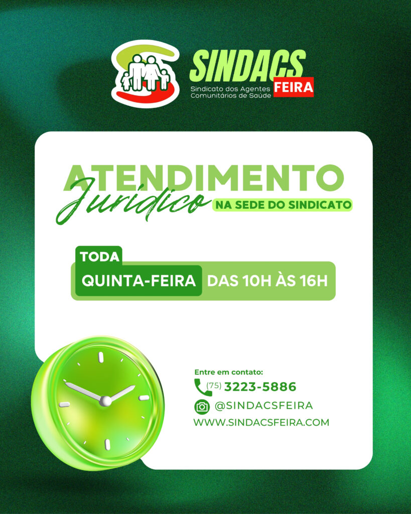 O SINDACS Feira disponibiliza atendimento jurídico regular para seus filiados, reforçando o compromisso com a defesa dos direitos dos Agentes Comunitários de Saúde (ACS).